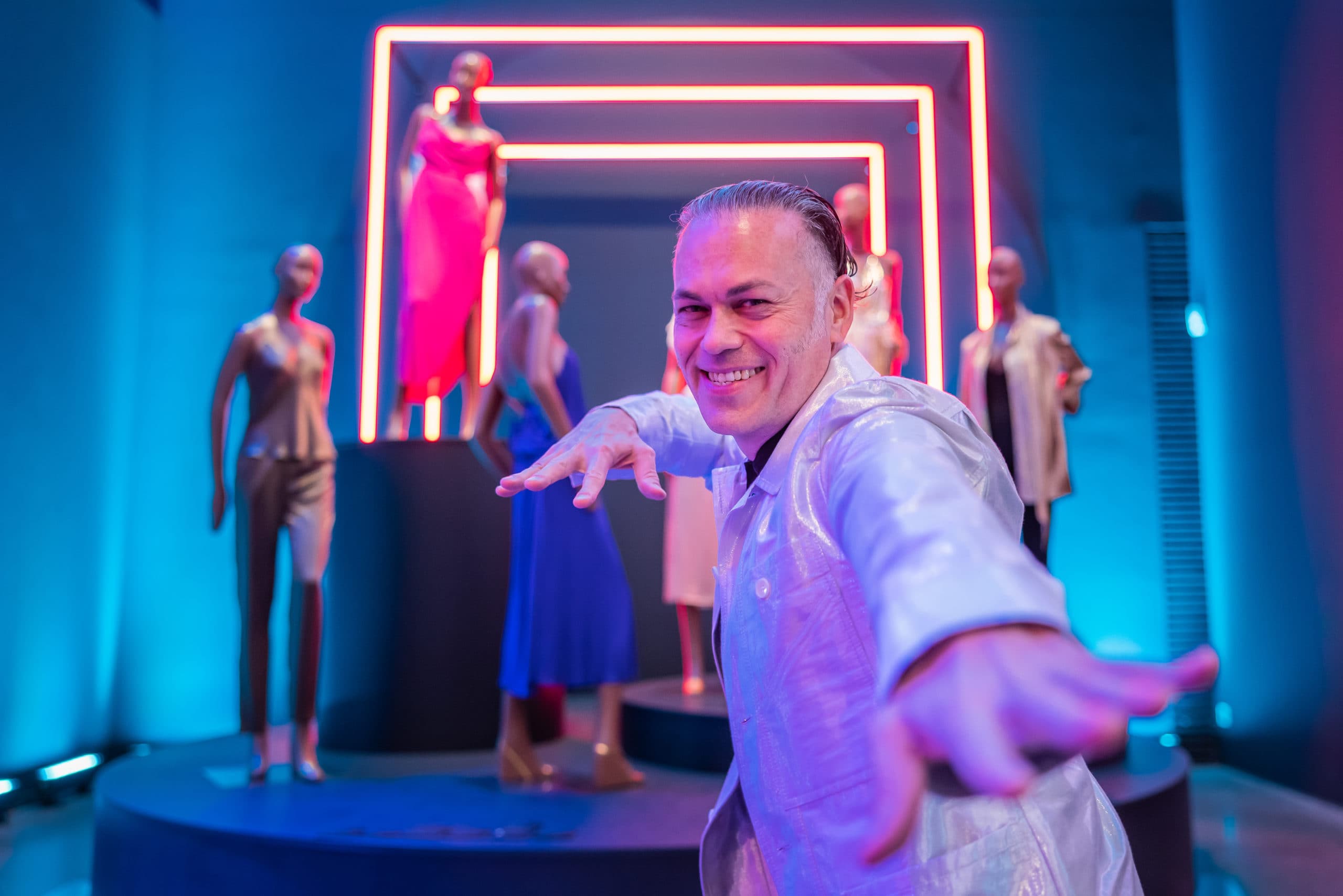 Aus der Ferne pumpt der Disco-Sound und zieht die Besucher:innen in die Dancefloor-Welt des Studio 54-DJs Richie Kaczo. Das typische Licht der berühmten „Chase Poles“ aus warmem Gelb und Rot sowie eine immersive Großprojektion von Originalaufnahmen der tanzenden Menge versetzen sie dreißig Jahre und 6.000 Kilometer zurück. Das perfekte Setting für die Kleidung von Halston, Oskar de la Renta, Antonio Lopez oder Rick Legaspi.